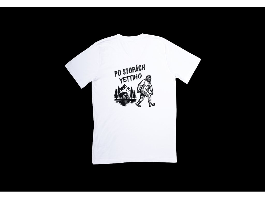Oficiální trika pochodu "Po stopách Yettiho" v bílé barvě s černým potiskem.